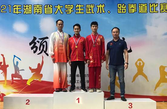 5月16日至21日,湖南省教育厅主办的2021年湖南省大学生武术比赛在湖南工业大学举行。来自全省各地38所高校、近400名运动员参赛。我校武术队在党总支副书记段岩为领队,教练刘毅军、熊玮的带领下,取得了七金六铜、男子团体第二、女子团体第三的好成绩,实现了新突破。