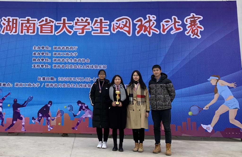 2020年湖南省首届大学生网球比赛于12月14日至12月18日分别在湖南工商大学和月亮岛红土网球俱乐部两个场地同时举行,来自全省的22个高校共169名运动员参加了比赛,我校网球队由体育学院邓晖院长担任领队,刘亮老师担任教练员,派出1男3女总共4名运动员参赛,经过两天的激烈比赛,我校荣获甲组女子团体第三名和女子双打第五名的佳绩。