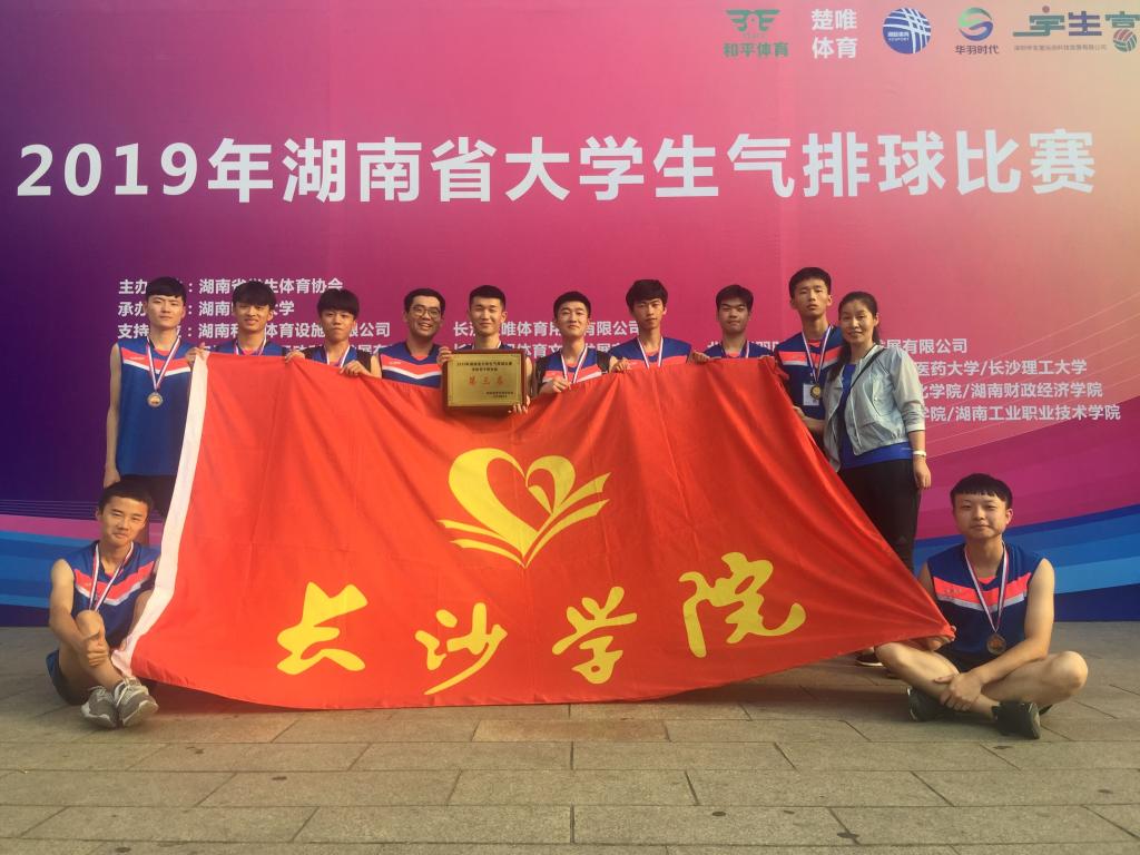 6月1日至2日,2019年湖南省大学生气排球比赛在湖南师范大学体育学院体育馆隆重举行。来自全省各高校共51支不同组别队伍参加了此次比赛,我校男子气排球队在领队杨芳良、教练刘飞宁老师的带领下,夺得学院男子阳光组季军。