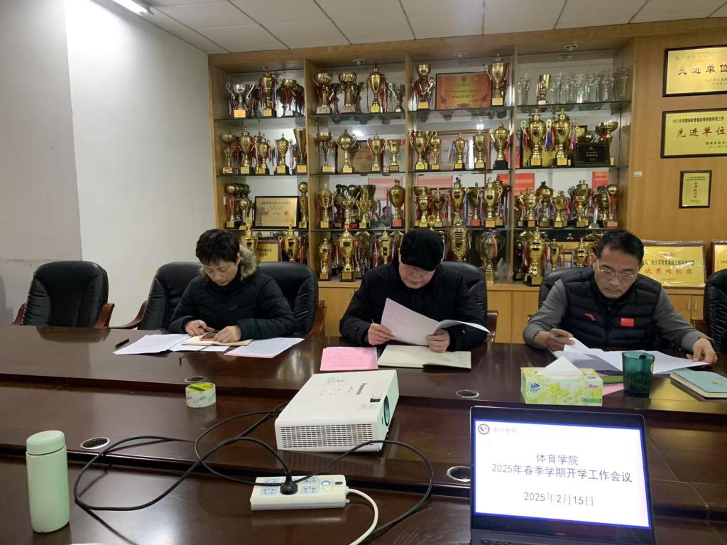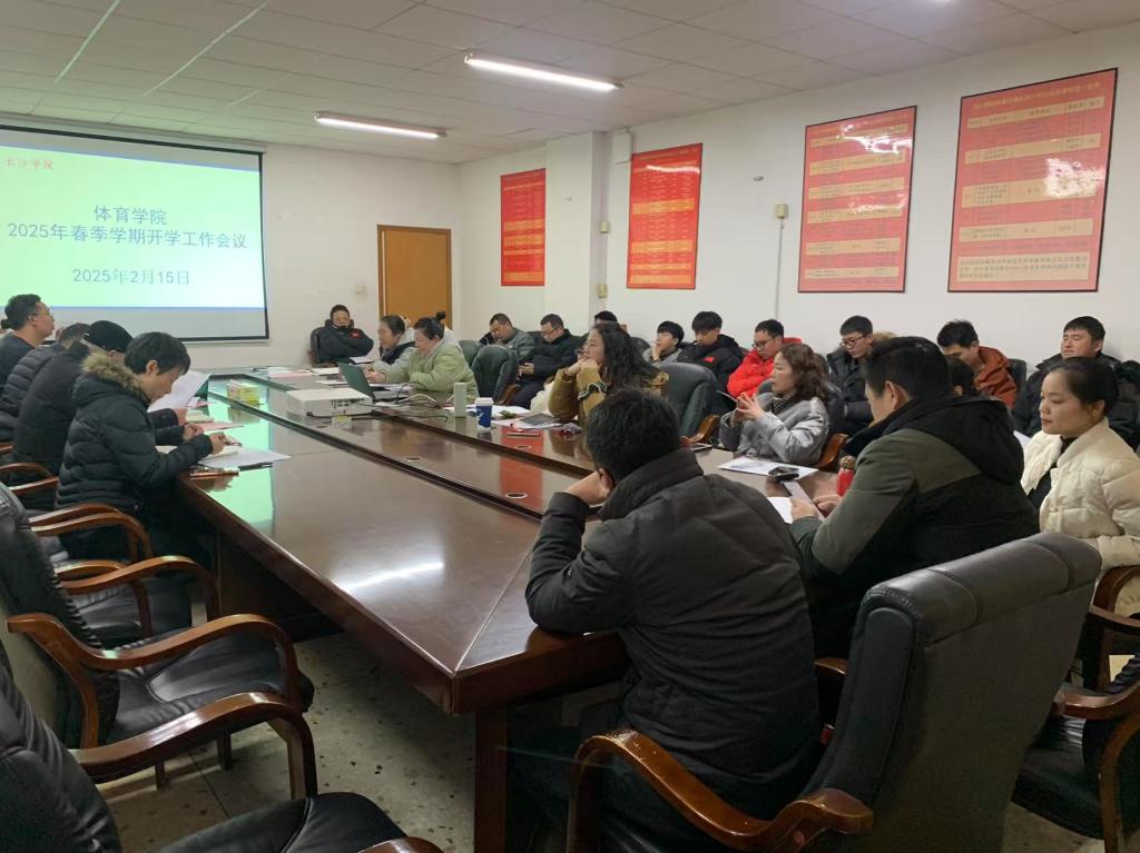 2月15日下午,体育学院2025年春季学期开学工作会议在天健体育场荣誉室召开,全院教职工参加,会议由党总支书记曾一兵主持,学院班子出席会议并讲话。