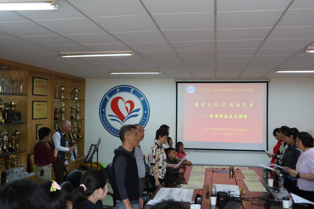 缕缕清风起,处处有“廉”景。为深入学习贯彻习近平总书记关于党风廉政建设的重要论述,引导教师树立正确的廉洁思想,深入推进“清廉长大”,建设“廉洁校园”,5月13日,体育学院别出心裁的创新廉洁活动新形式,拓展廉政文化新供给,举行了一场亲子研学+书法讲堂+游戏互动的清廉主题教育活动,学院领导班子、图书馆综合服务部主任李建平、全院教职工及11位教职工小孩参加活动,党总支书记曾一兵主持活动。
