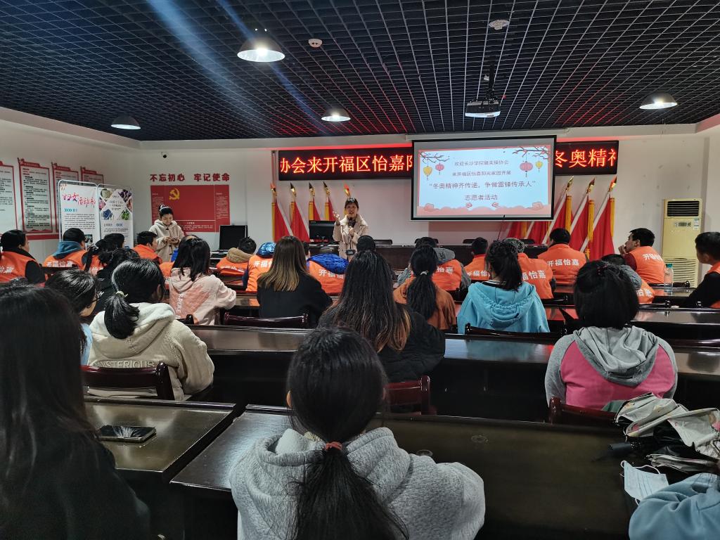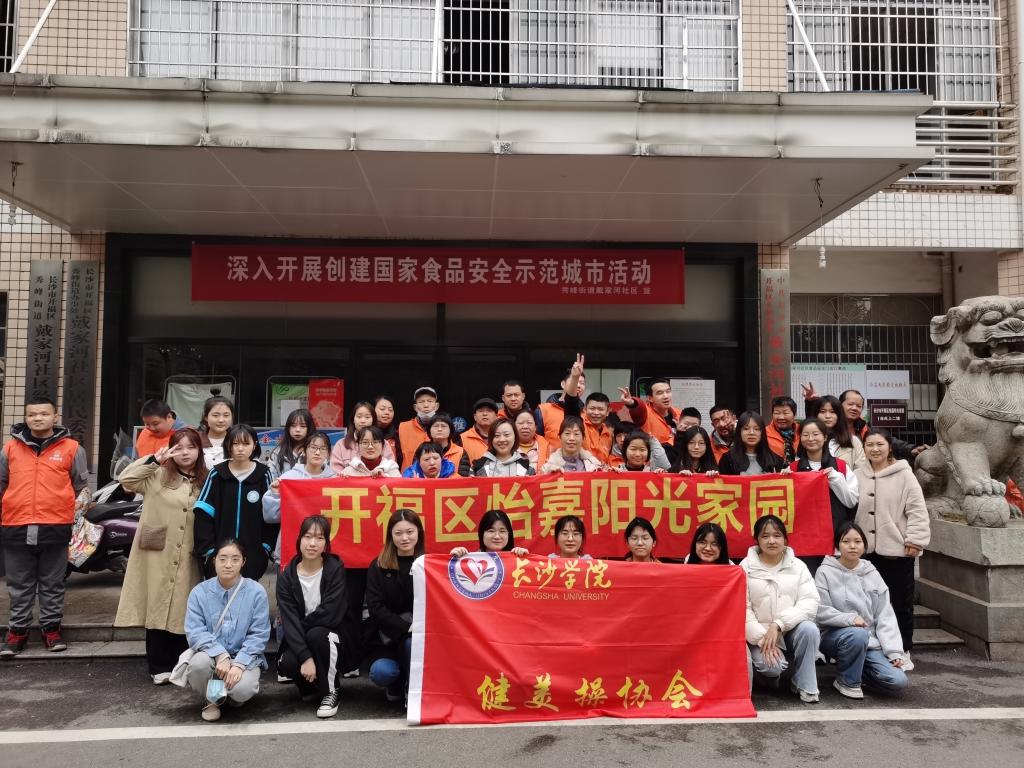 2022年3月5日上午,天朗气清,春风拂面。长沙学院体育学院谭祝平老师带领着长沙学院健美操社团的21名团员来到怡嘉阳光家园并开展了以“冬奥精神齐传递,争做雷锋传承人”为主题的爱心活动。