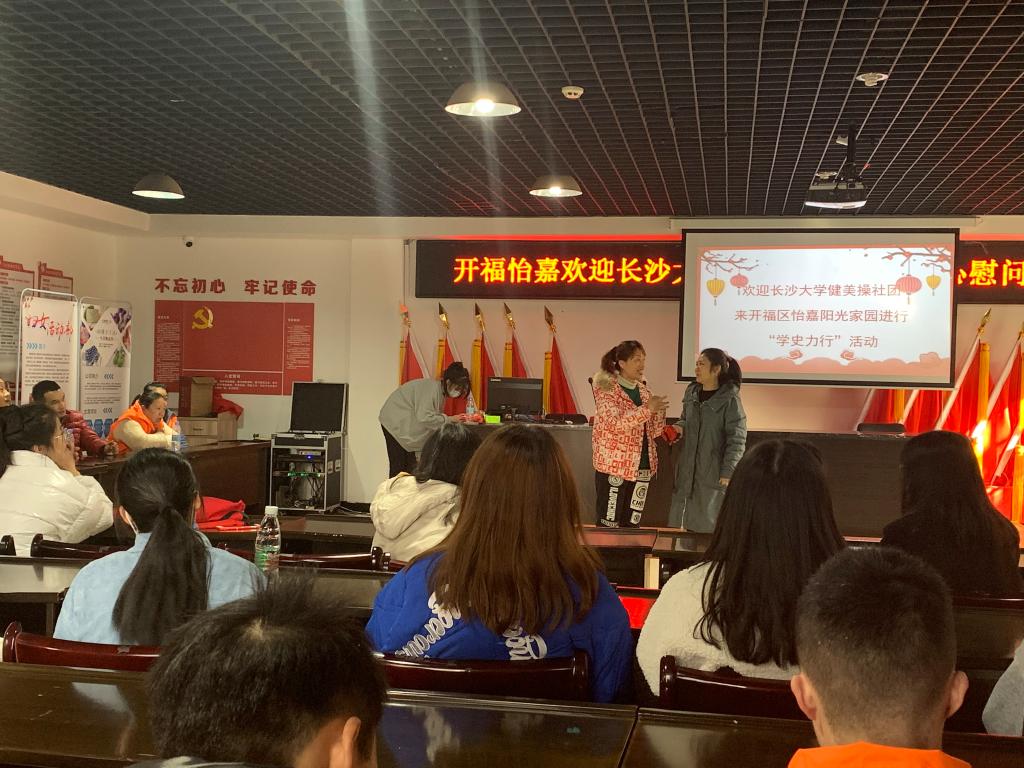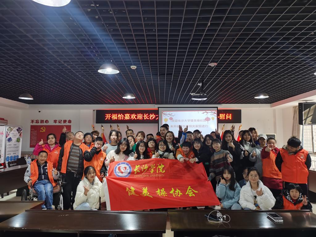 2021年12月19日下午,伴着明媚的阳光和柔和的清风,长沙学院健美操社团的15名成员在指导老师谭祝平的带领下,来到了长沙市开福区嘉怡阳光家园,开展了以“温暖残障人士”为主题的团建活动。