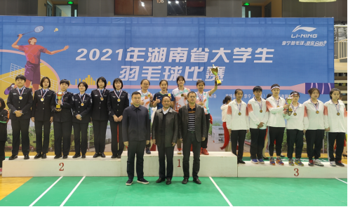 11月30日至12月8日,2021年湖南省大中学生羽毛球比赛在衡阳师范学院隆重举行。来自全省不同地区的50余支高校代表队、600多名运动员参加了此次为期8天的精彩角逐。我校羽毛球队由谭义红担任领队,崔克老师和阳媛媛老师担任教练,派出6男6女共12名运动员,参加了男子团体、女子团体、男单、女单、混双、男双、女双共七个项目。最终获得了女子团体铜牌,谢媛、孙旖女双第四。