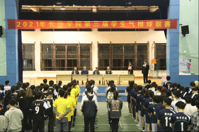 为贯彻新时代学校体育工作精神,紧紧围绕教会、勤练、常赛要求,激发我校学生参与体育锻炼的热情,丰富校园体育文化生活,推动气排球在校园的普及和发展。11月5日晚18时30分,长沙学院第三届学生气排球联赛在永康体育馆正式拉开序幕,出席开幕式的嘉宾有计算机工程与应用数学学院党总支书记曾一兵,国际合作与交流处副处长王向军,团委副书记李晗,体育学院党总支副书记段岩,体育学院副院长刘战红。