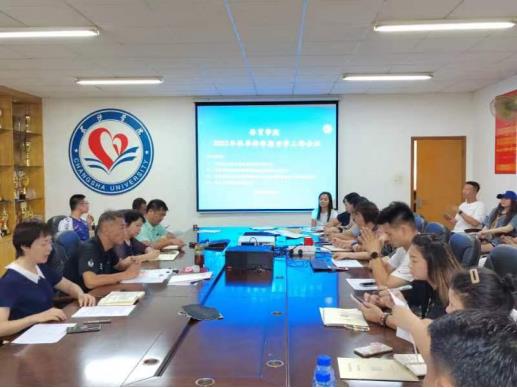 首先,刘战红副院长就新学期教学工作作了重点发言,主要围绕开学前的准备工作(教学五大件、场地、器材、卫生、安全等),体质健康测试工作和课程思政等方面进行。刘院长特别强调了教学能力提升的重要性和课程思政的必要性,要求各课程负责人修订教学大纲中的思政内容,将思政落实,并希望全体教师牢牢把握政治方向,注重学生的全面发展,为培养德智体美劳全面发展的社会主义建设者和接班人而努力!