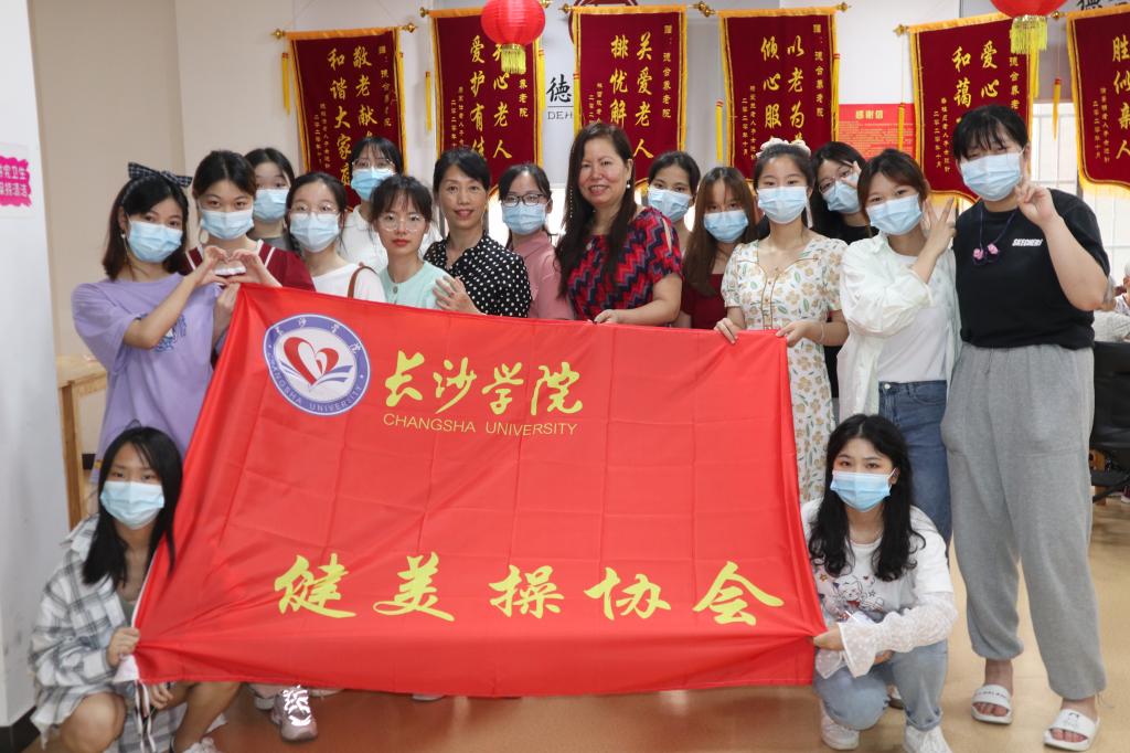 为了积极弘扬“爱国、诚信、友善”的社会主义核心价值观,鼓励大学生践行尊老、敬老、爱老、助老的中华民族传统美德。经过十多天的精心组织安排,体育学院谭祝平老师带领长沙学院健美操协会的胡雅馨、廖楠楠、曾婕等十五位成员,于2021年6月20号下午前往长沙市德合养老院探望老人们。