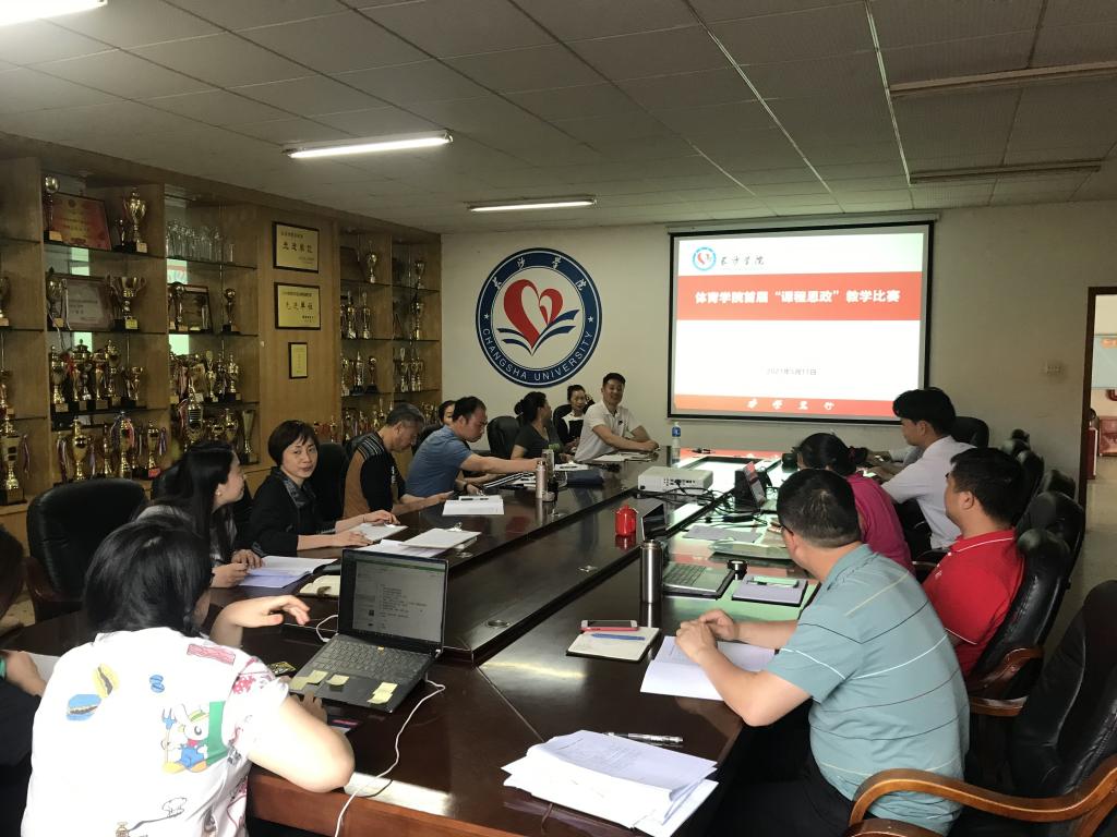 为深入贯彻全国高校思想政治工作会议、落实立德树人根本任务,推进课程思政教学改革,切实提高体育学院教师“课程思政”教学能力,5月11日下午,体育学院在天健荣誉室举办了首届“课程思政”教学比赛。