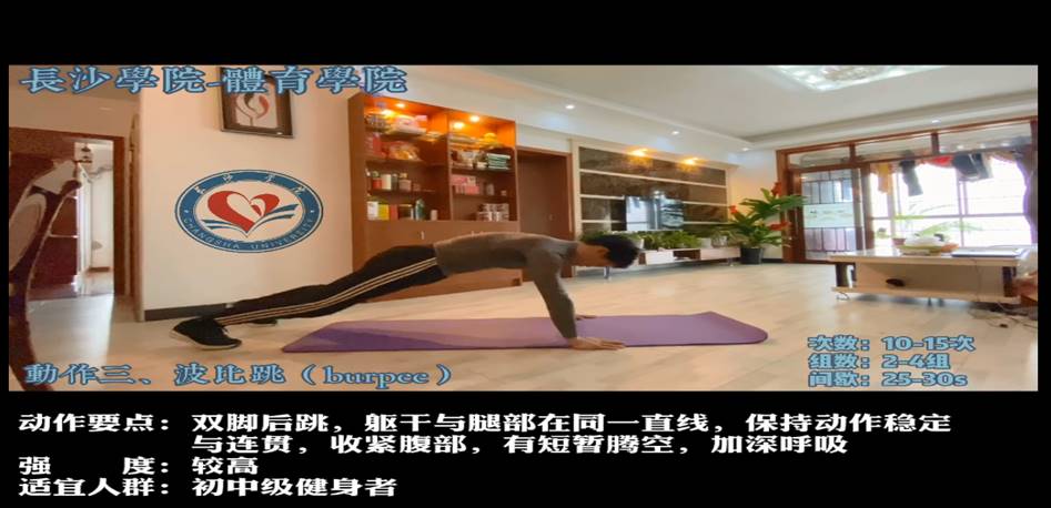 “不给国家增添负担,人人从居家锻炼身体开始!”霸气的号召加上力量十足的动作,再搭配着动感的音乐,近日,一个个由我校体育学院老师们录制的居家运动视频走红师生们的朋友圈,给久居家中的师生带来了欢乐。当下,新型冠状病毒感染的肺炎疫情形势严峻,为了缓解全校师生居家期间缺乏锻炼的现状,体育学院全体教职工发挥专业特色,群策群力、上下协同,制作了一系列居家运动视频,为学校广大师生居家锻炼、提高免疫力贡献力量。