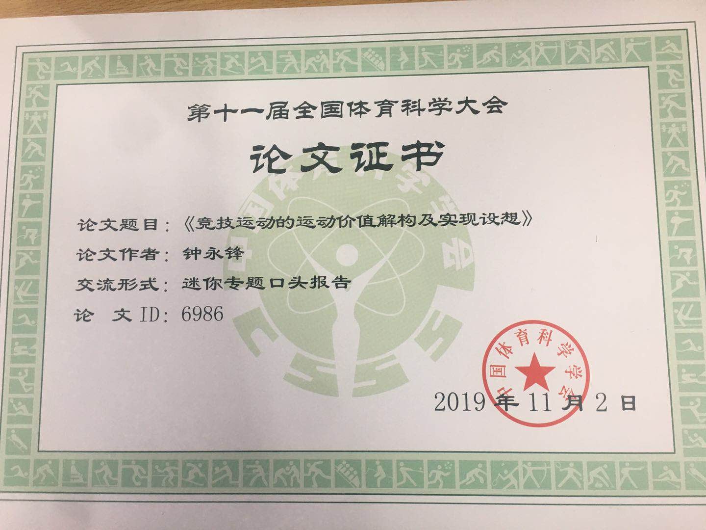 我部教师党员钟永锋博士于11月3日上午参与了本次大会的专题报告与交流,题目是《竞技运动的运动价值结构构建与实现路径》。报告内容围绕着21世纪以来社会价值迷失和道德失范展开,其具体表现为奢靡化、物质化、去智化、粗鄙化、空心化、娱乐化、颓废化、佛系化,此类精神疾患颇有愈演愈烈之势。而竞技运动的意义汇聚了人类既竞争又和美、既冲突又和谐、既排异又合作、既攻击又关爱的特有精神,竞技运动成为现代人类社会中最为绚丽多彩的活动形态之一。此研究通过文献资料法、问卷调查法、专家访谈法、层次分析法、主成分分析、案例分析法等初步探讨了现代竞技运动的运动价值理论。